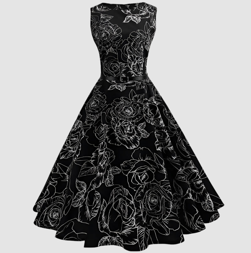 - Taglio: vestito a forma di A, lunghezza fino al ginocchio