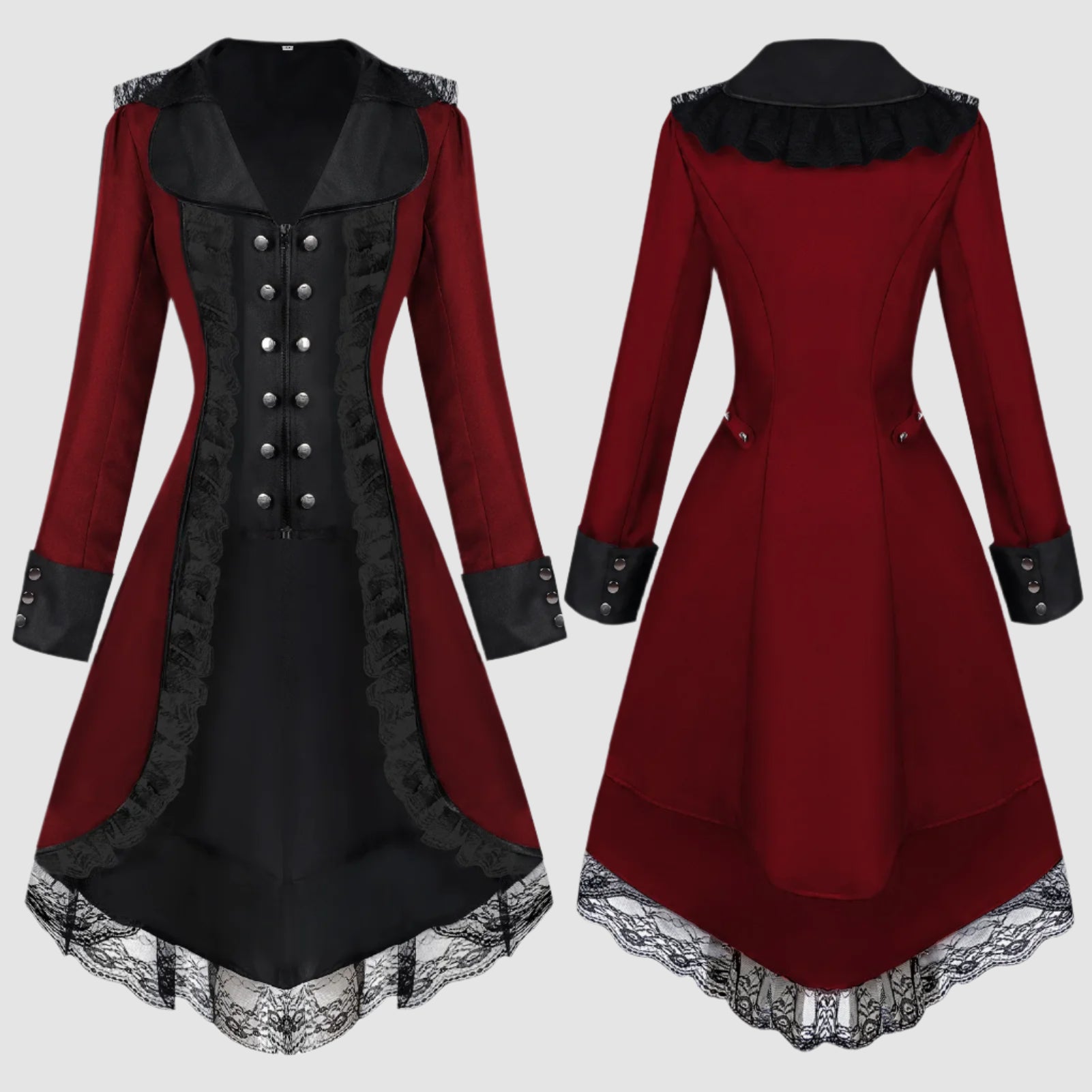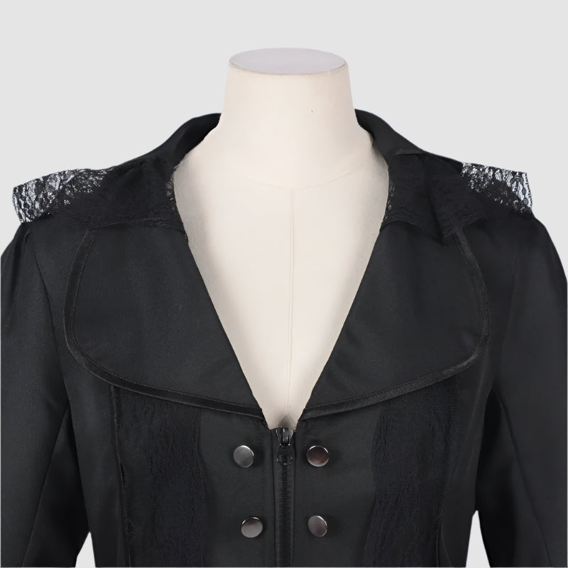- Modello: giacca lunga e aderente con rifinitura in pizzo