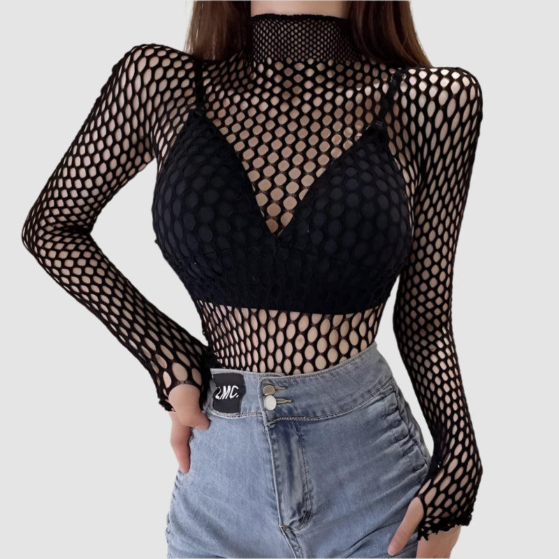- Maniche: Lunghe, realizzate in rete trasparente.