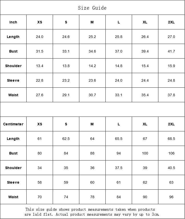 | Taglia | Lunghezza | Busto | Spalle | Manica | Vita |