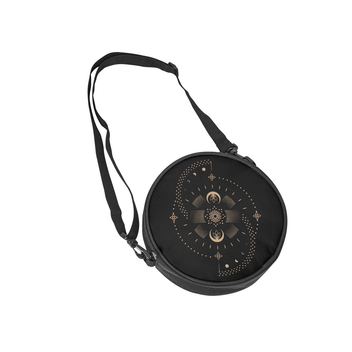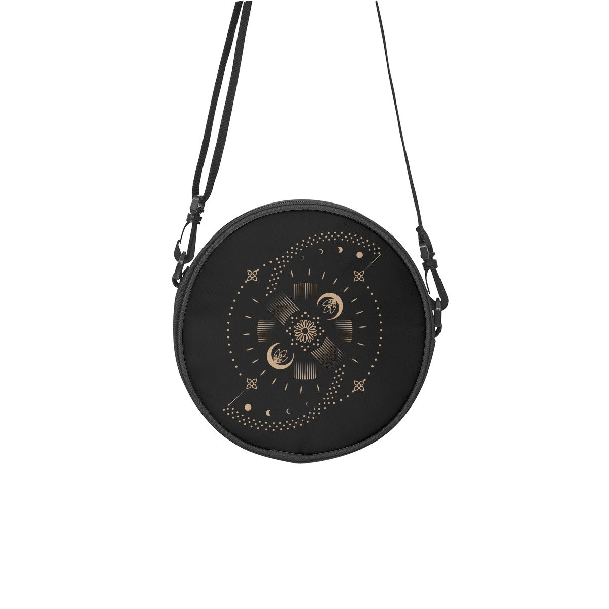 Borsa rotonda nera con simbolo della luna dorato