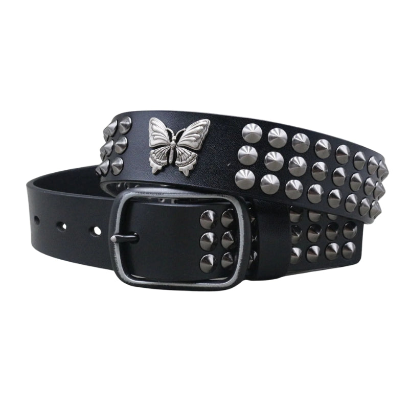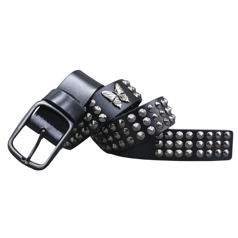 Cintura alternativa con file di teschi in metallo e borchie