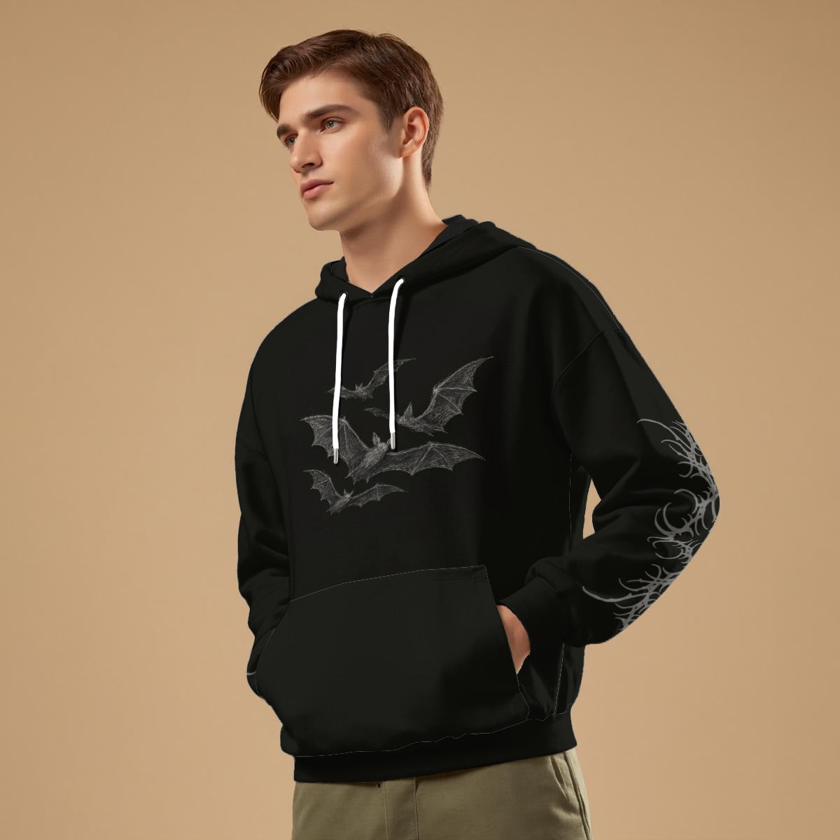 Realizzata al 100% in cotone naturale, la felpa garantisce comfort e durata, e la sua trama densa (310 g/m²) protegge perfettamente dal freddo. Morbida al tatto, piacevole sulla pelle, ideale per le serate fredde e le lunghe passeggiate malinconiche. La grande tasca a "canguro" e il classico cappuccio con laccetti aggiungono funzionalità, mantenendo un carattere minimalista.