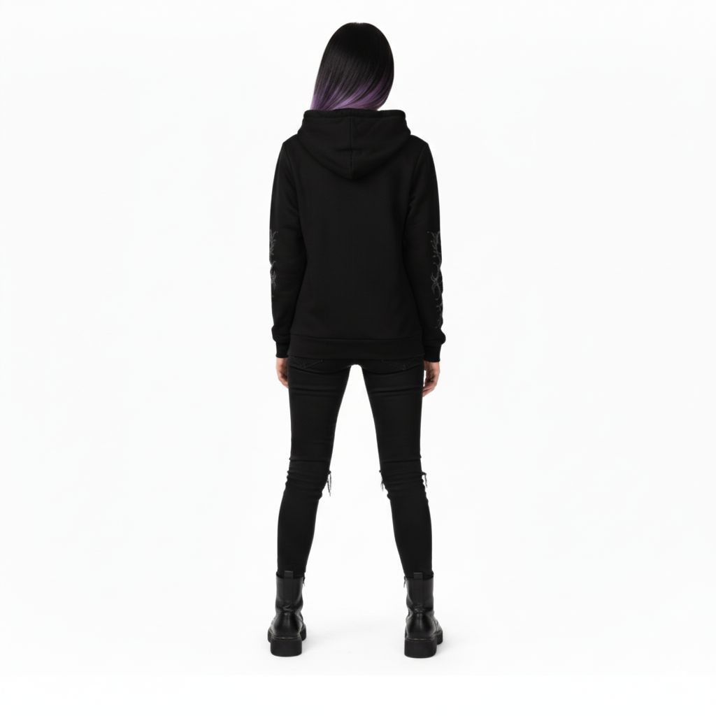 Esprimi la tua individualità con la felpa unica "The Serpent’s Oath" - creata per gli amanti dell'estetica gotica e della moda alternativa. Il design scuro con motivo di teschi, serpenti e rose simboleggia forza, mistero e pace interiore. Non è solo un capo d'abbigliamento – è una dichiarazione di stile.