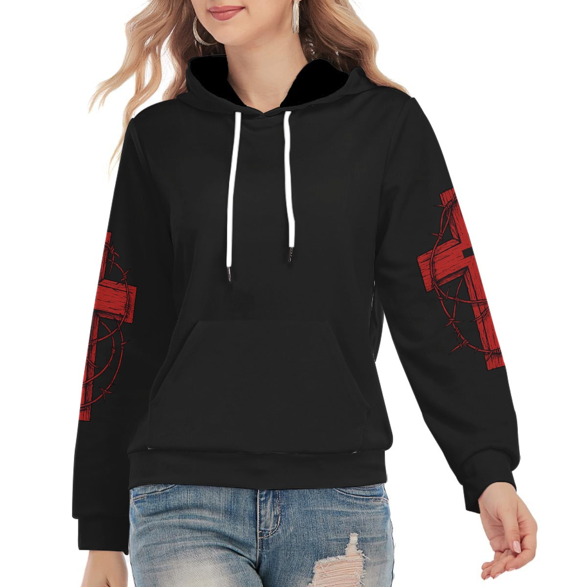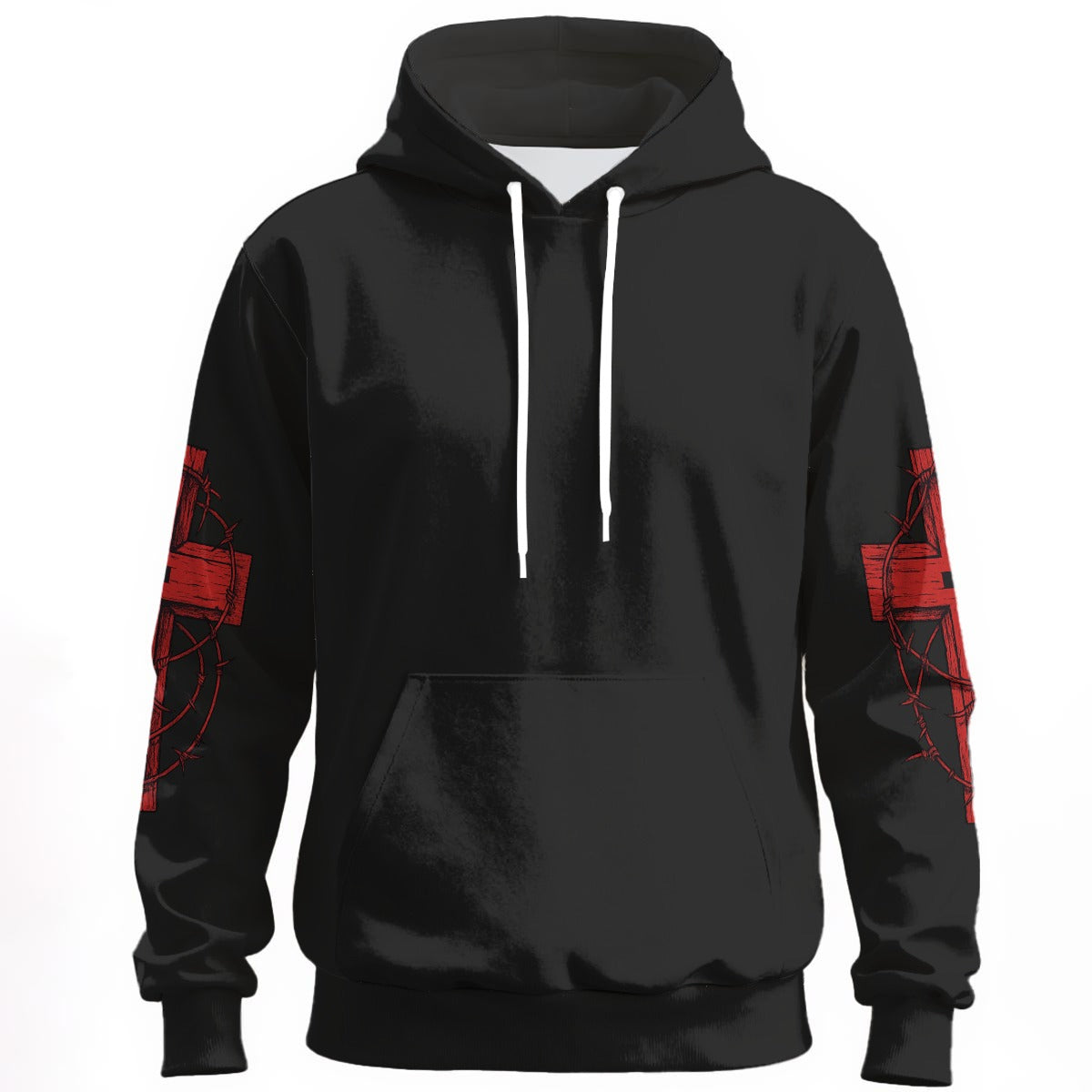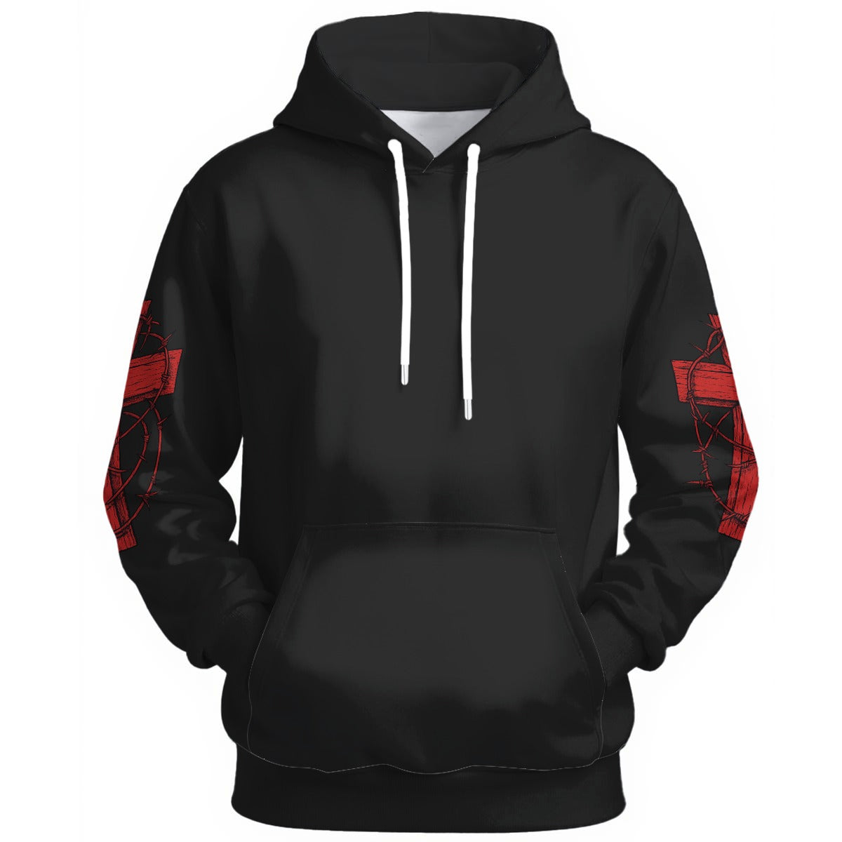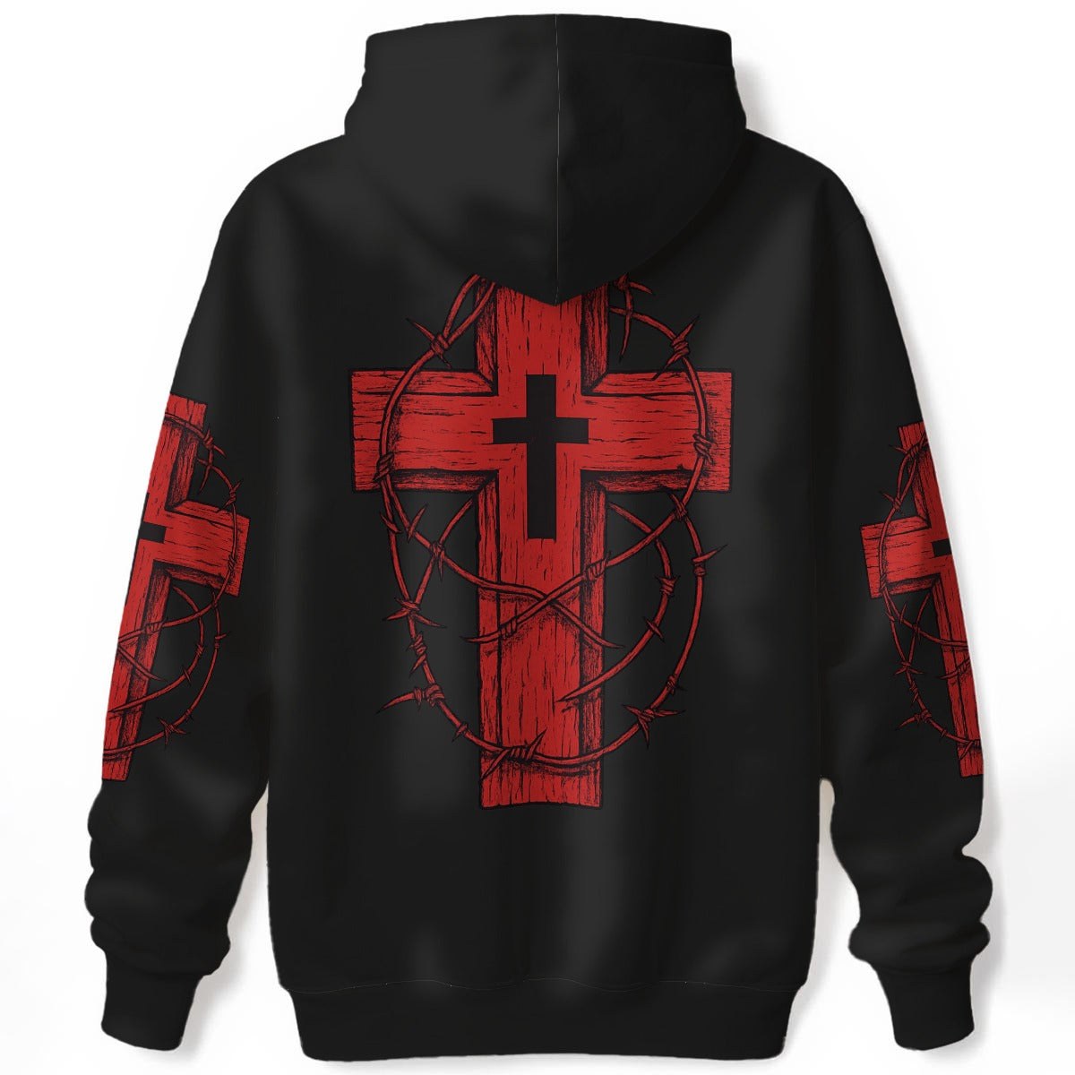 Felpa nera con croce rossa sulla schiena e corona di spine motivo gotico