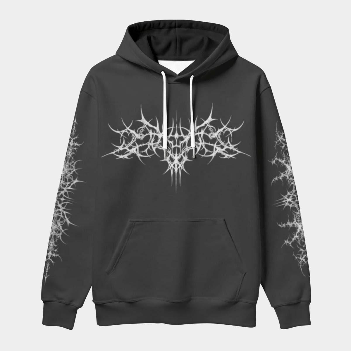 - Elementi: Cordino bianco, tasca frontale e cappuccio interno nero