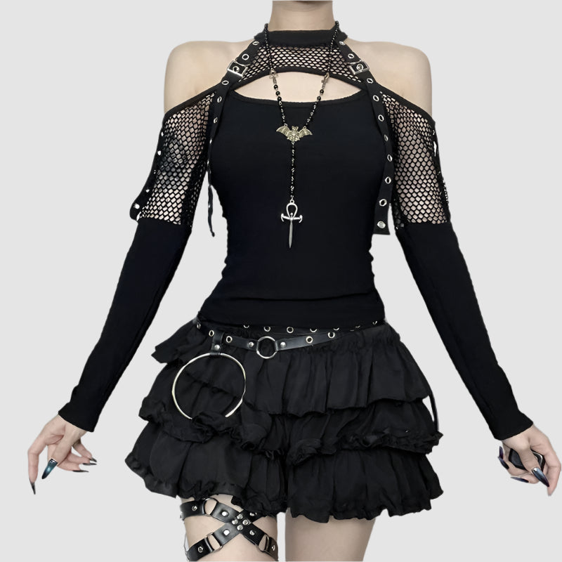 - Maniche: Lunghe, con spalle scoperte per un tocco stiloso.